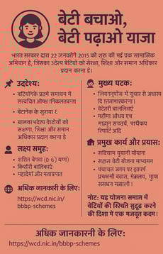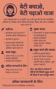 बेटी बचाओ, बेटी पढ़ाओ" योजना भारत सरकार द्वारा 22 जनवरी 2015 को शुरू की गई एक सामाजिक अभियान है, जिसका उद्देश्य बेटियों को सुरक्षा, शिक्षा और समान अधिकार प्रदान करना है।